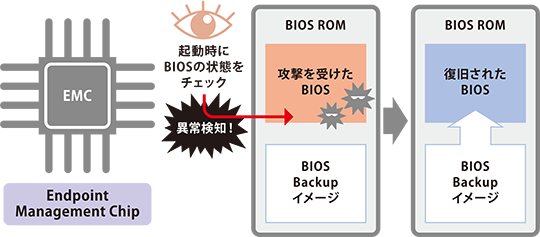 本機能を実装するBIOSは、米国の国立標準技術研究所が定めるセキュリティガイドラインNIST SP 800-147/193で規定されているセキュリティ要件を実装しています。
